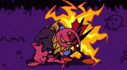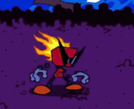The whole place is covered in pitch black darkness, and the only source of light - the fire of DynamiteHead.. and Badheads, I guess.